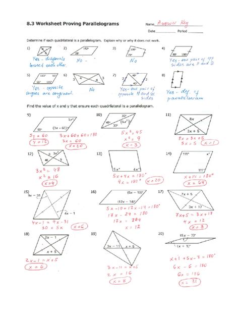 8.3 Worksheet Proving Parallelograms Answer Key